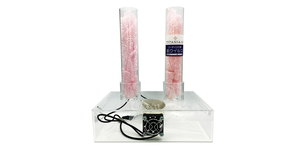 チタニア1.0を吹き付けた面に付着した菌やウイルスは、光が当たることにより「継続して無力化」されます。